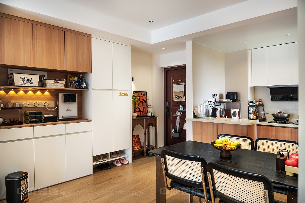瀏覽量:88每一處細節(jié),都是他們對“把日子過成詩,讓家裝滿故事”的詮釋。以原木的溫潤、白調(diào)的清爽為基底,在玄關(guān)處嵌入復(fù)古邊幾,擺上藝術(shù)感的裝飾畫,仿佛時光在此打了個溫柔的結(jié);餐廚區(qū)的咖啡角裝滿對生活的小確幸,與開放式廚房的煙火氣交融,是晨起的咖啡香與深夜的飯菜香的浪漫邂逅;客廳里,黑色皮沙發(fā)搭配復(fù)古風(fēng)抱枕,一旁的藝術(shù)綠植蜿蜒生長,就像主人對生活的熱愛肆意又熱烈。